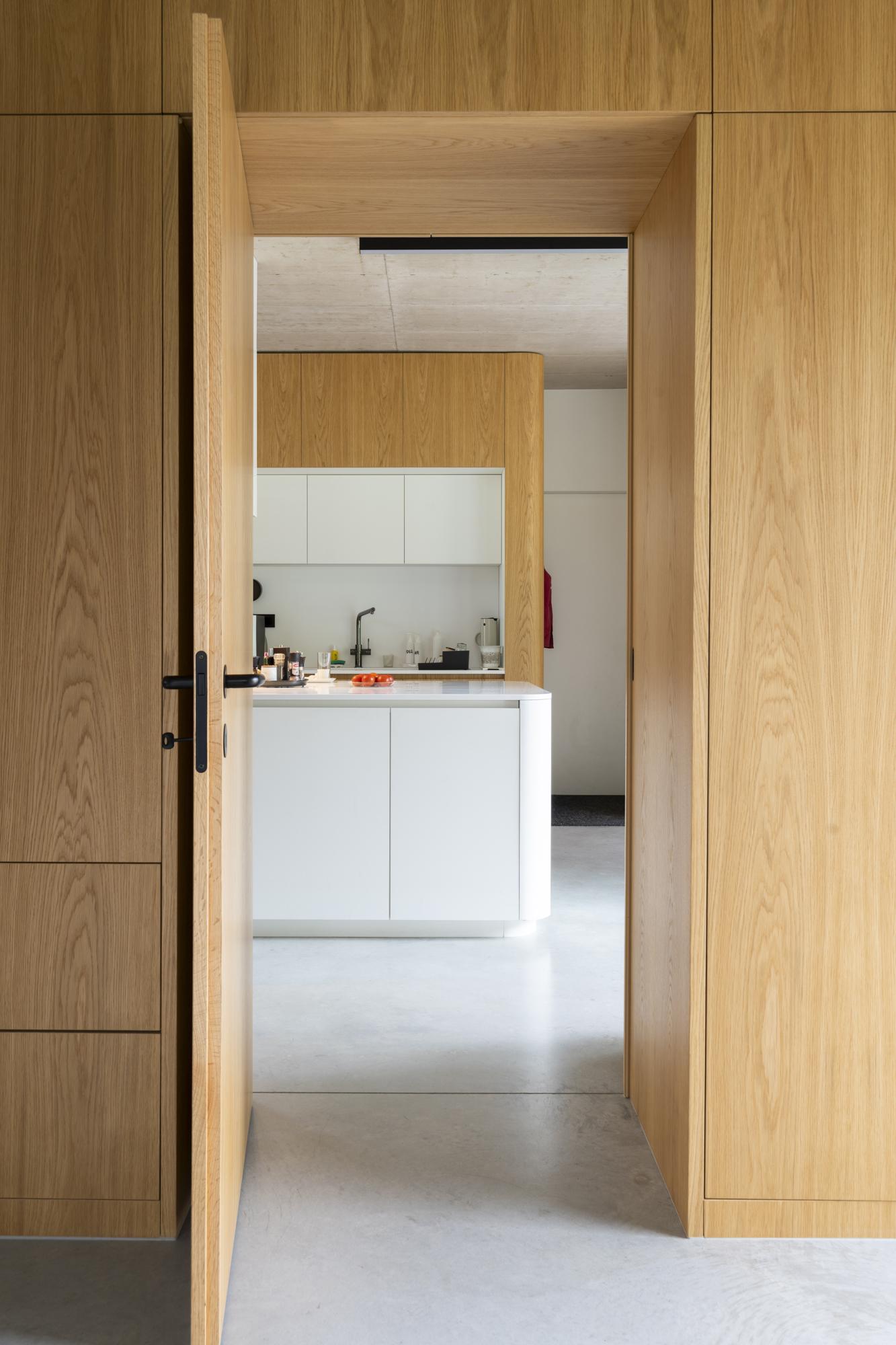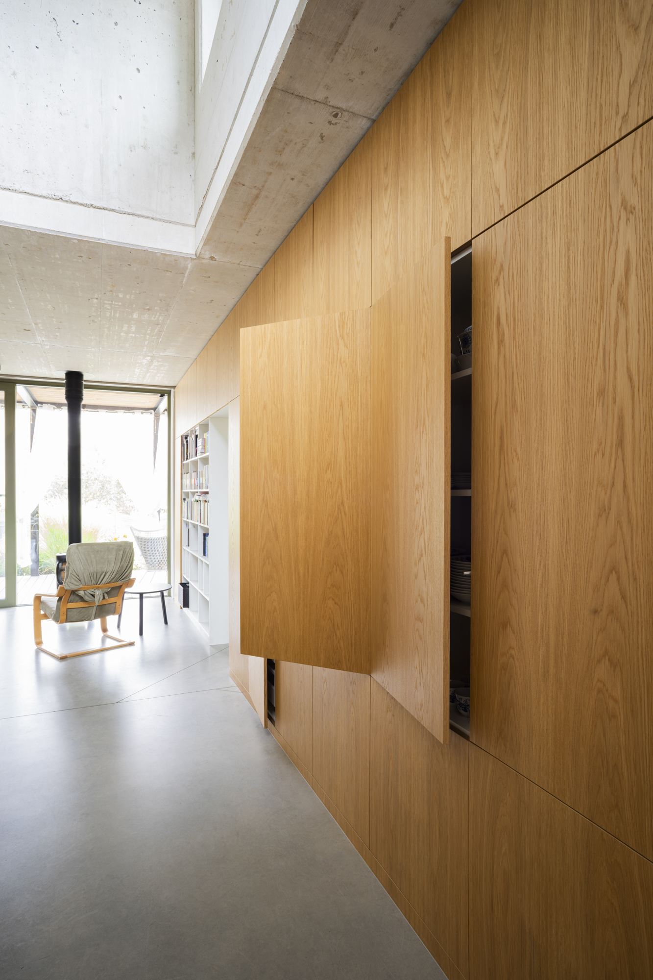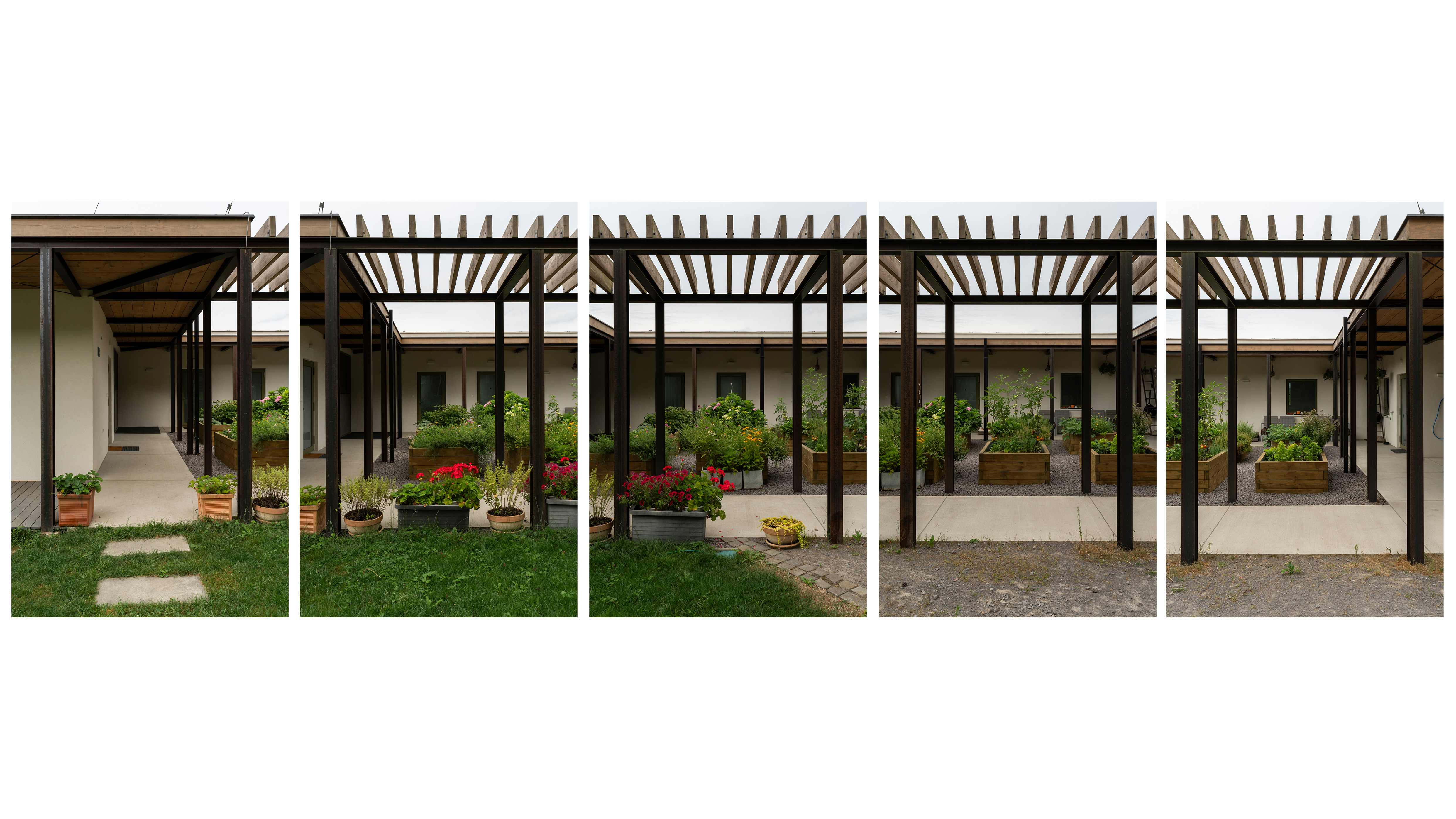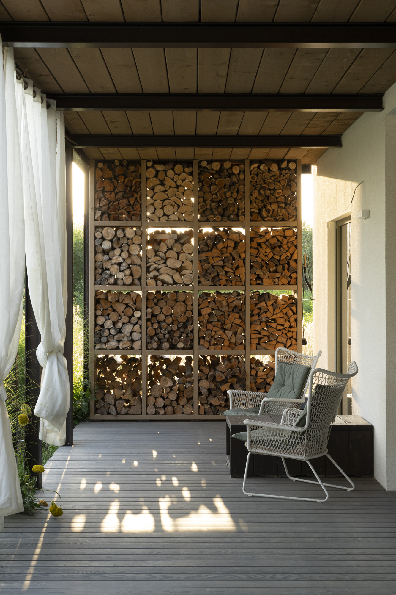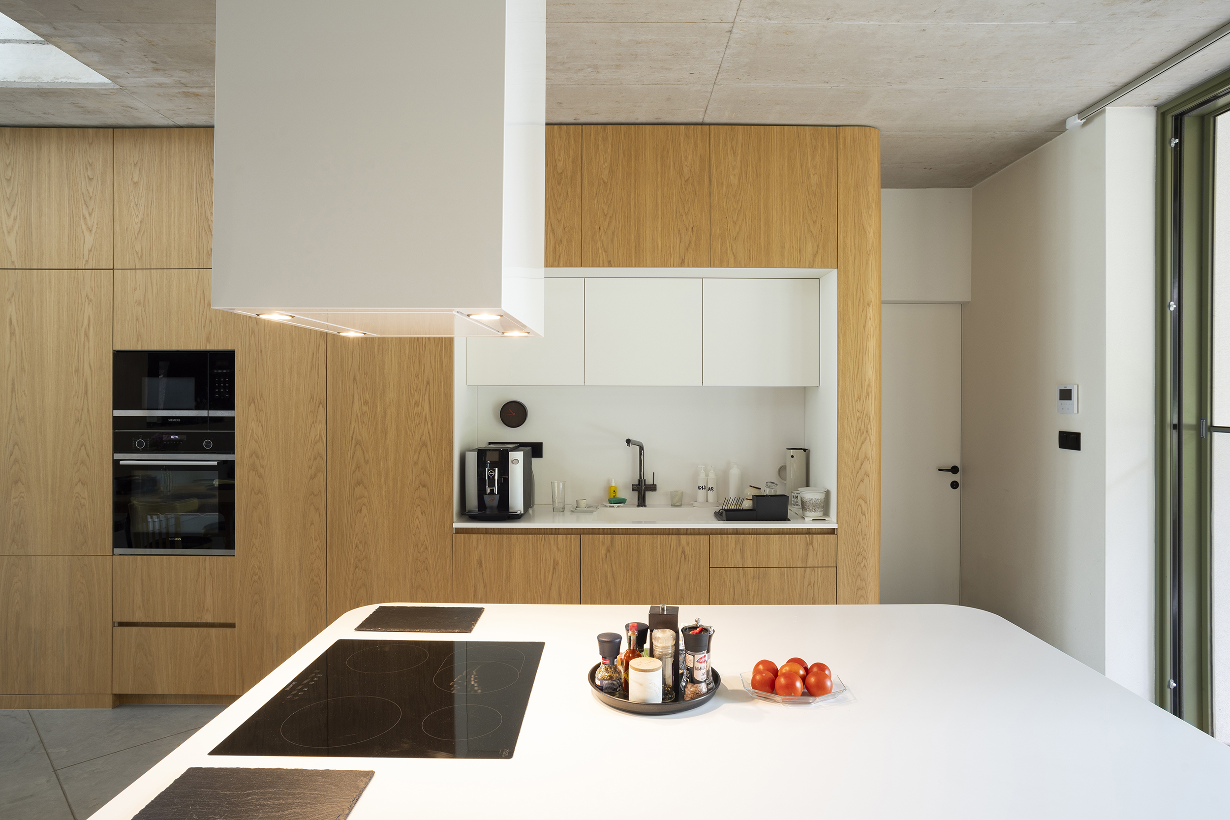 Tento rodinný dům átriového typu je velkorysý, kompaktní, užívá světlík a atrium a pracuje se světlem. Dispozice vychází z uspořádání v rastru čtverců 4x4m. Prostory se tak přirozeně prolínají a vytváří příjemné pobytové zóny bez nadbytečných komunikačních prostor a konstrukcí. Rodinný dům je čtvercový s dominantním světlíkem uprostřed, k němu přiléhá objekt garsonky a garáže. Objekty jsou doplněny o pergoly, plnící funkci jak zastřešení komunikačních a pobytových prostor v zahradě, tak stínění prosklených ploch domu, a však konstrukce objektu je převyšující, dává tak najevo svou přítomnost a dominanci.