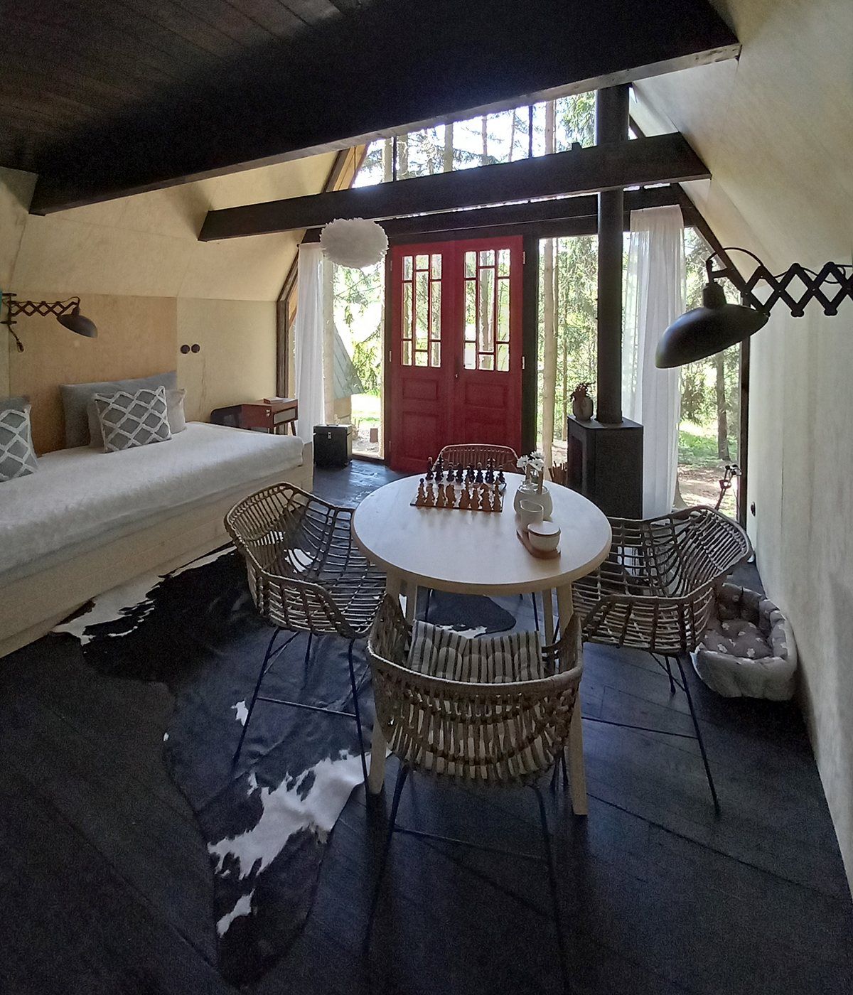 Chatka Lykke je jednou ze zrenovovaných chatek v areálu Hotelu Kouty a slouží k ubytovávání hostů jako rozšíření kapacity stávajícího hotelu. Chatka je maximálně propojena do exteriéru. Interiér je otevřený a rozdělený do jednotlivých pobytových zón, je zařízen ve stylu Lykke s důrazem na detail.