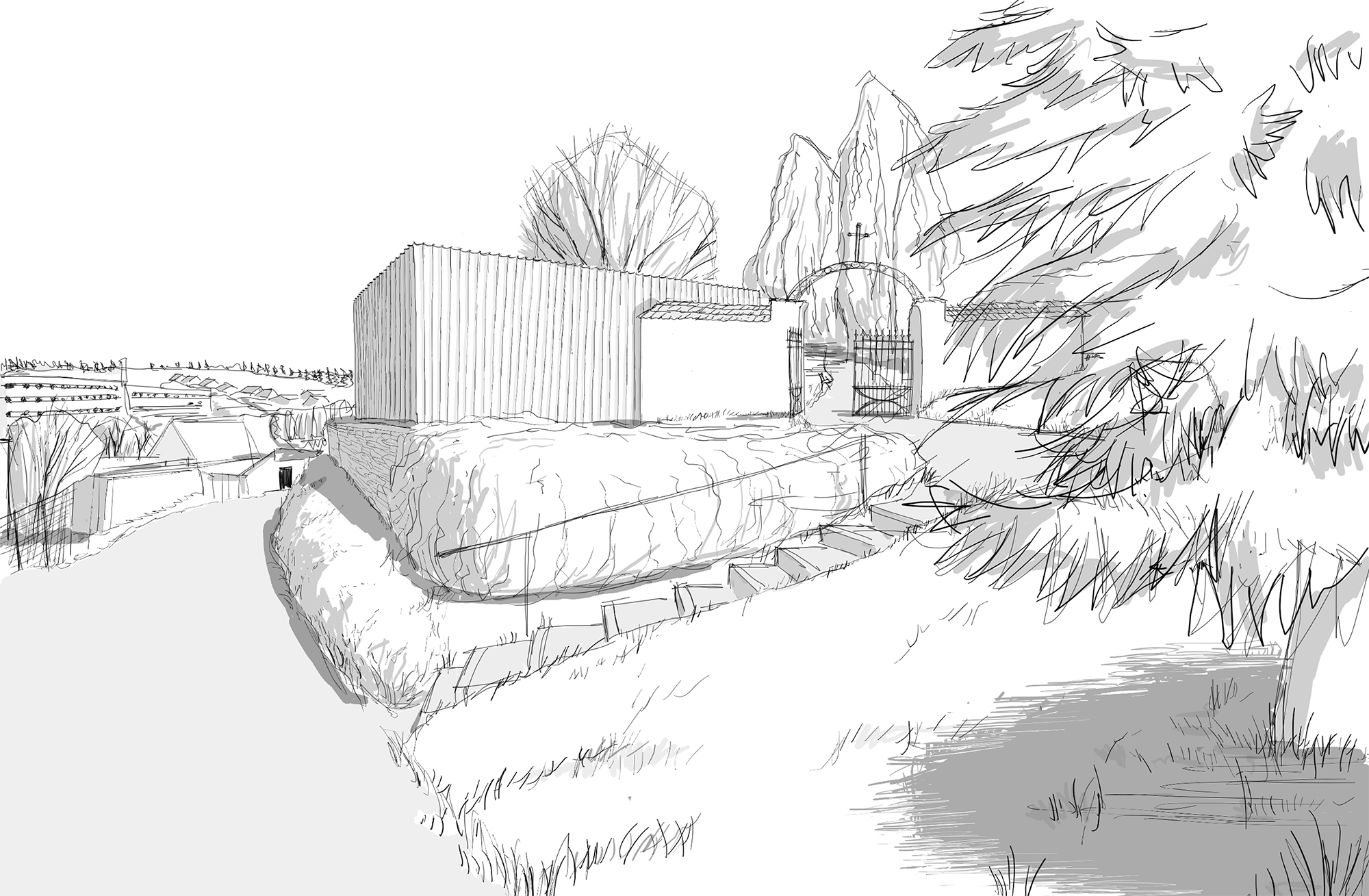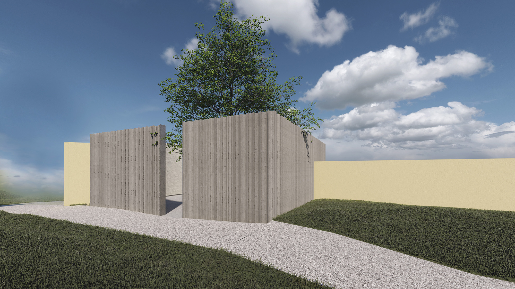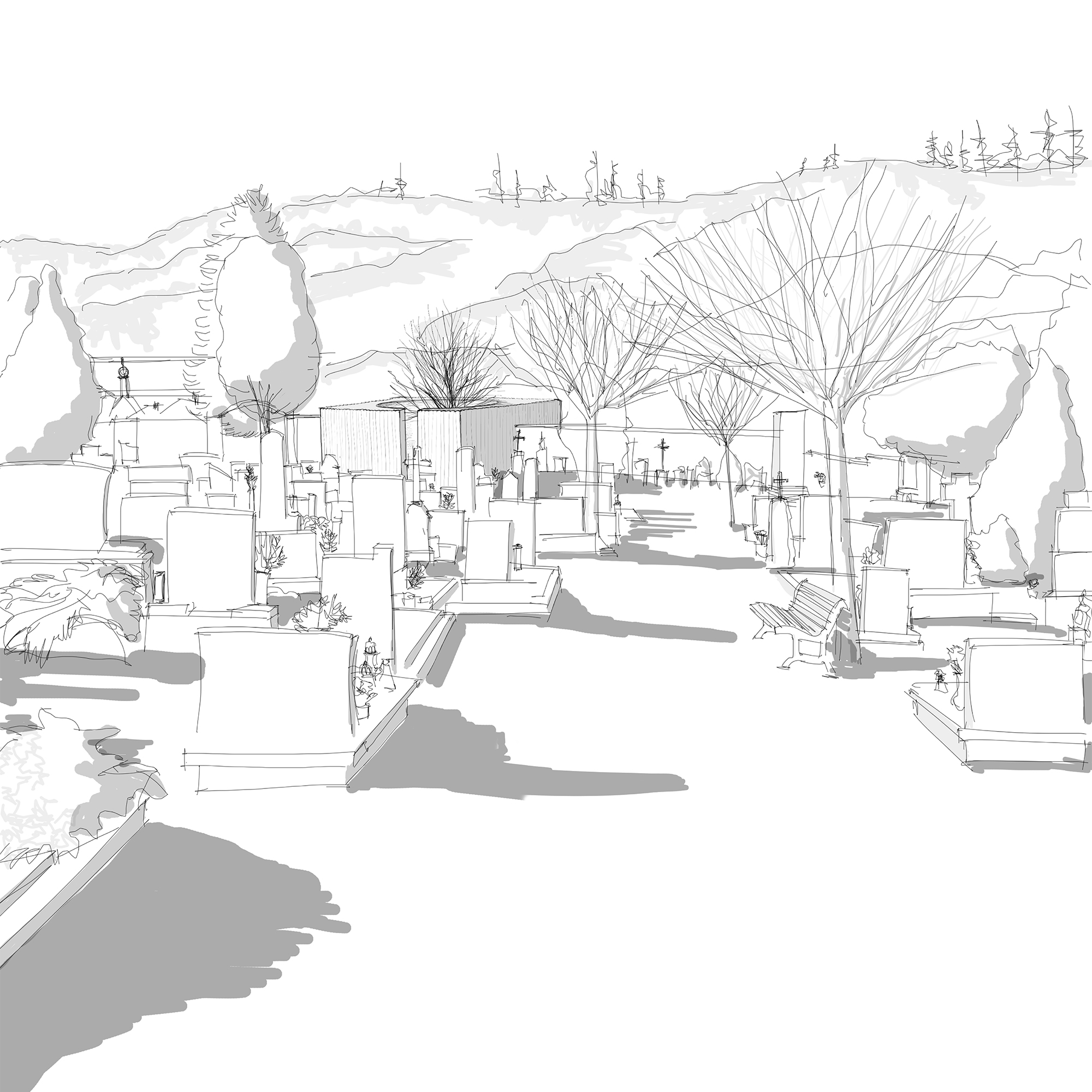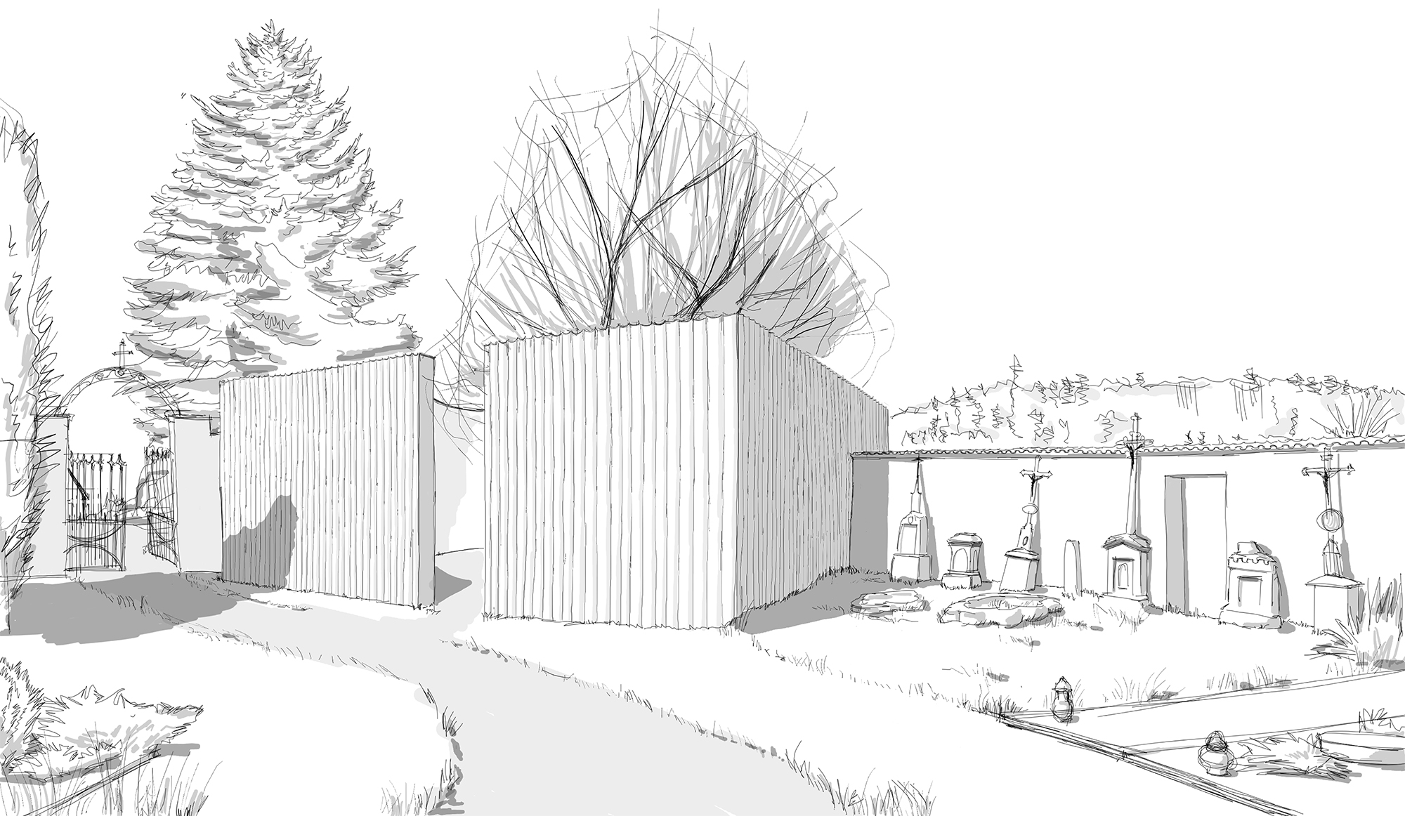 hmotové paměti místa. Spolu s hřbitovní zdí je součástí vnějšího tvaru, který hřbitov obepíná