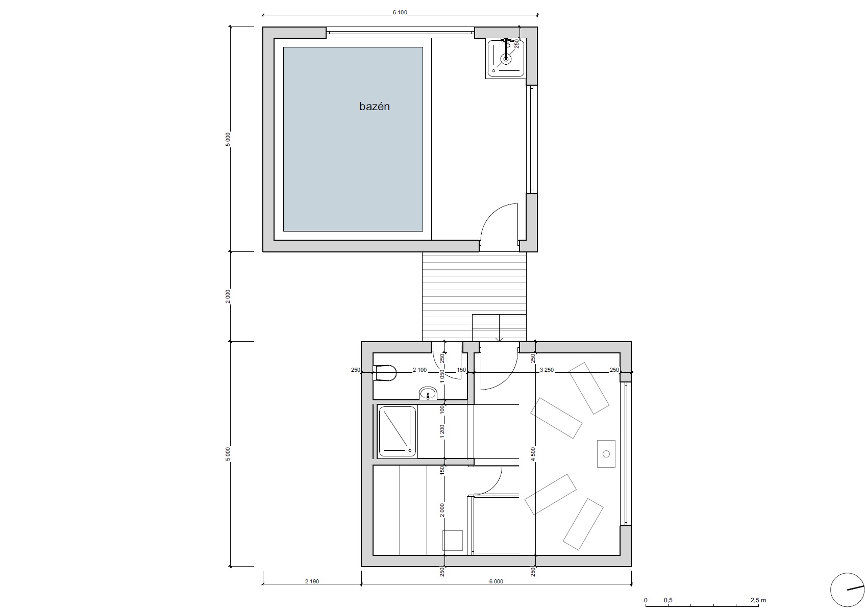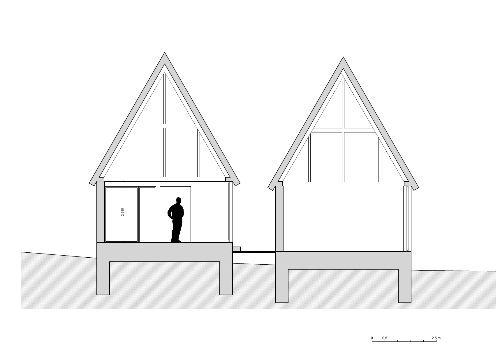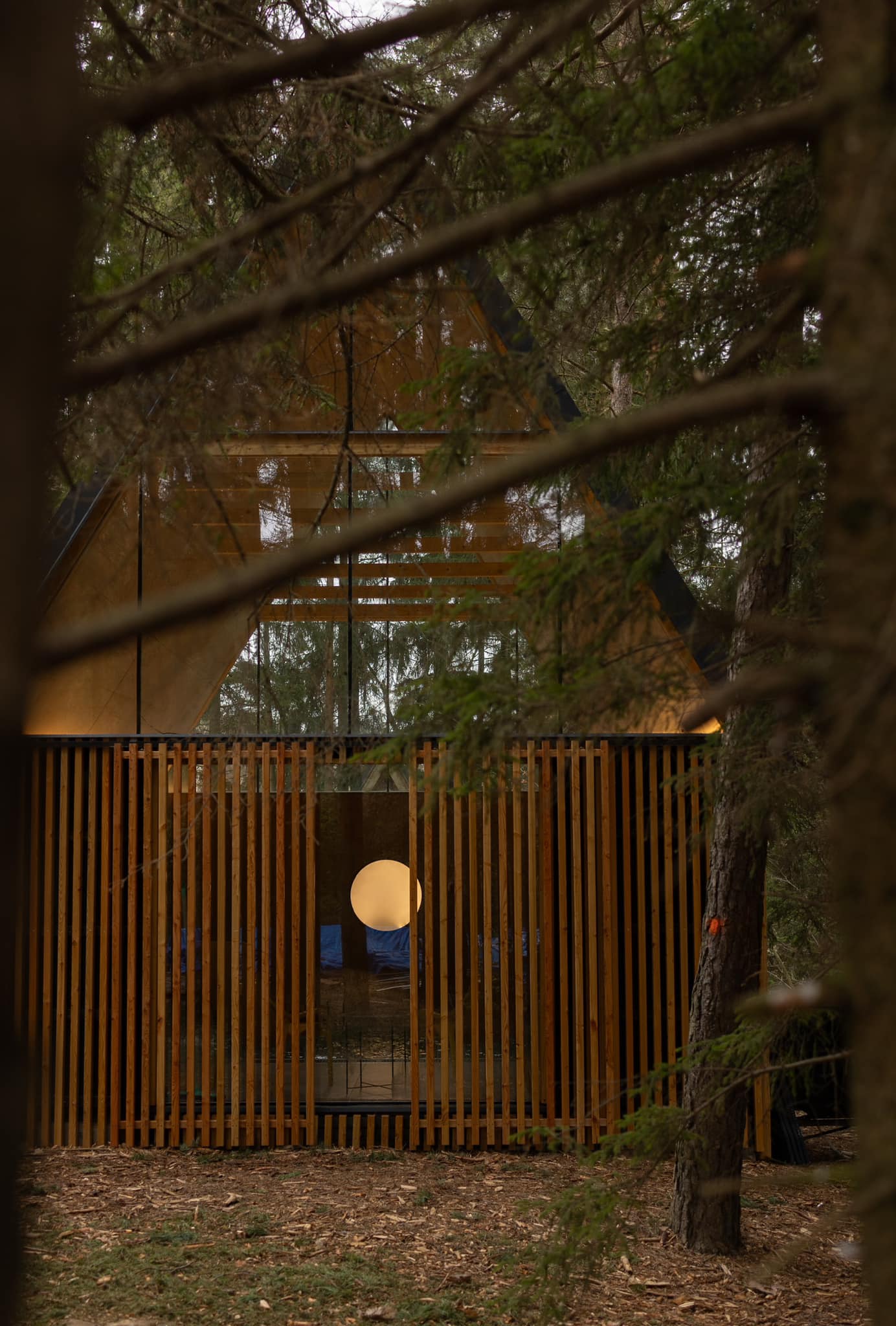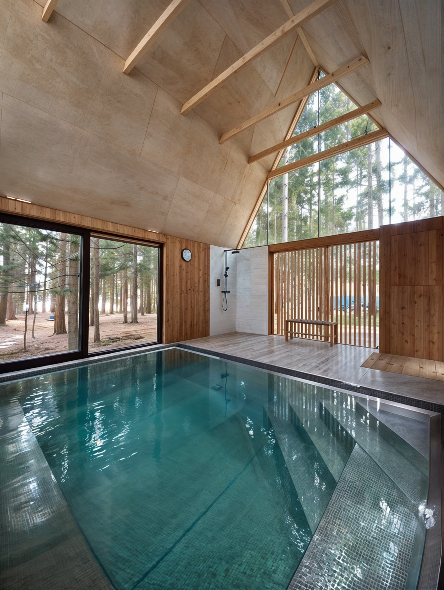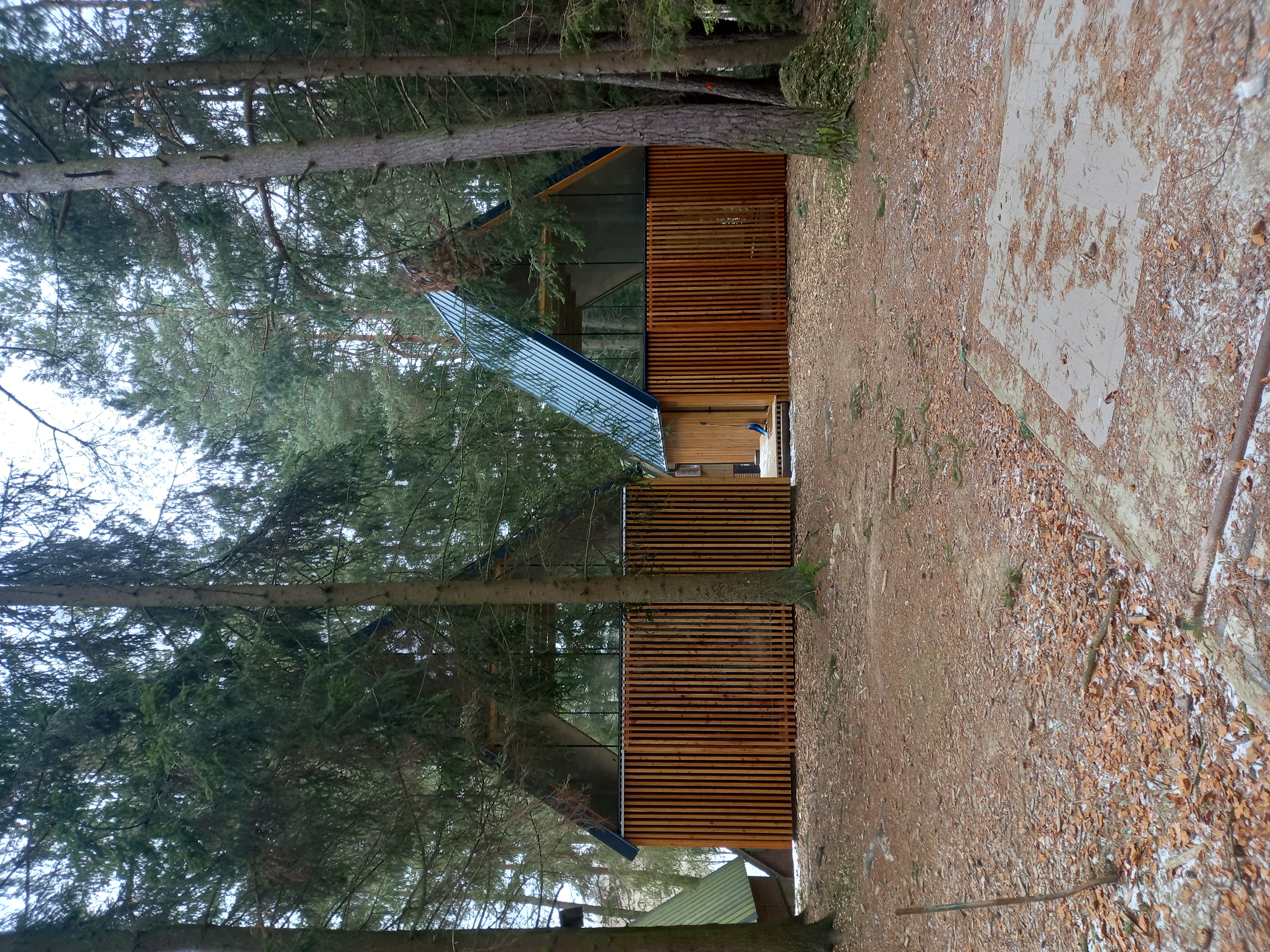 Navrhli jsme lesní wellness s termálním bazénem a relaxčním prostorem pro lesní hotelový areál. Wellness je zasazeno do archetypálního tvaru chatek, které jej obklopují. Nedává se na obdiv, splývá s okolím a po vstupu dovnitř návštěvníka překvapí. V těsné blízkosti jsou navrženy dva objekty, jedna chatka s bazénem, druhá chatka určena k odpočinku a masážím. Funkčně doplňují naši plovoucí saunu Kouty v nedaleké blízkosti.