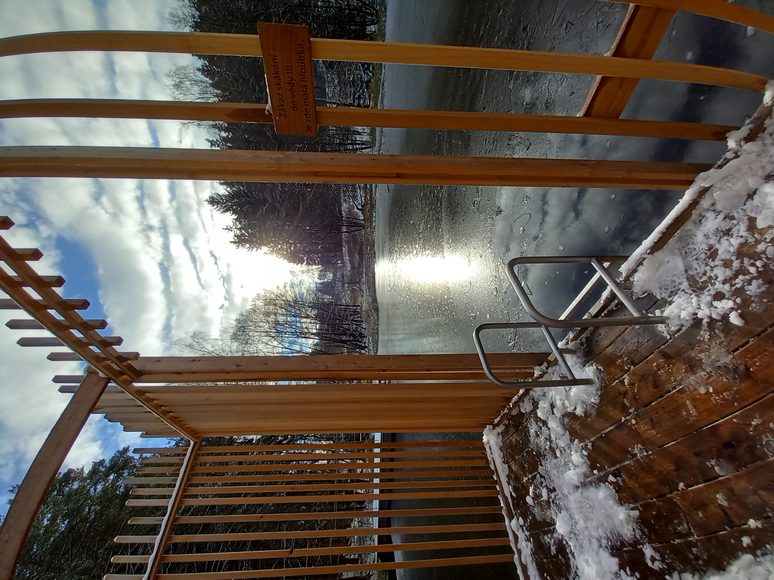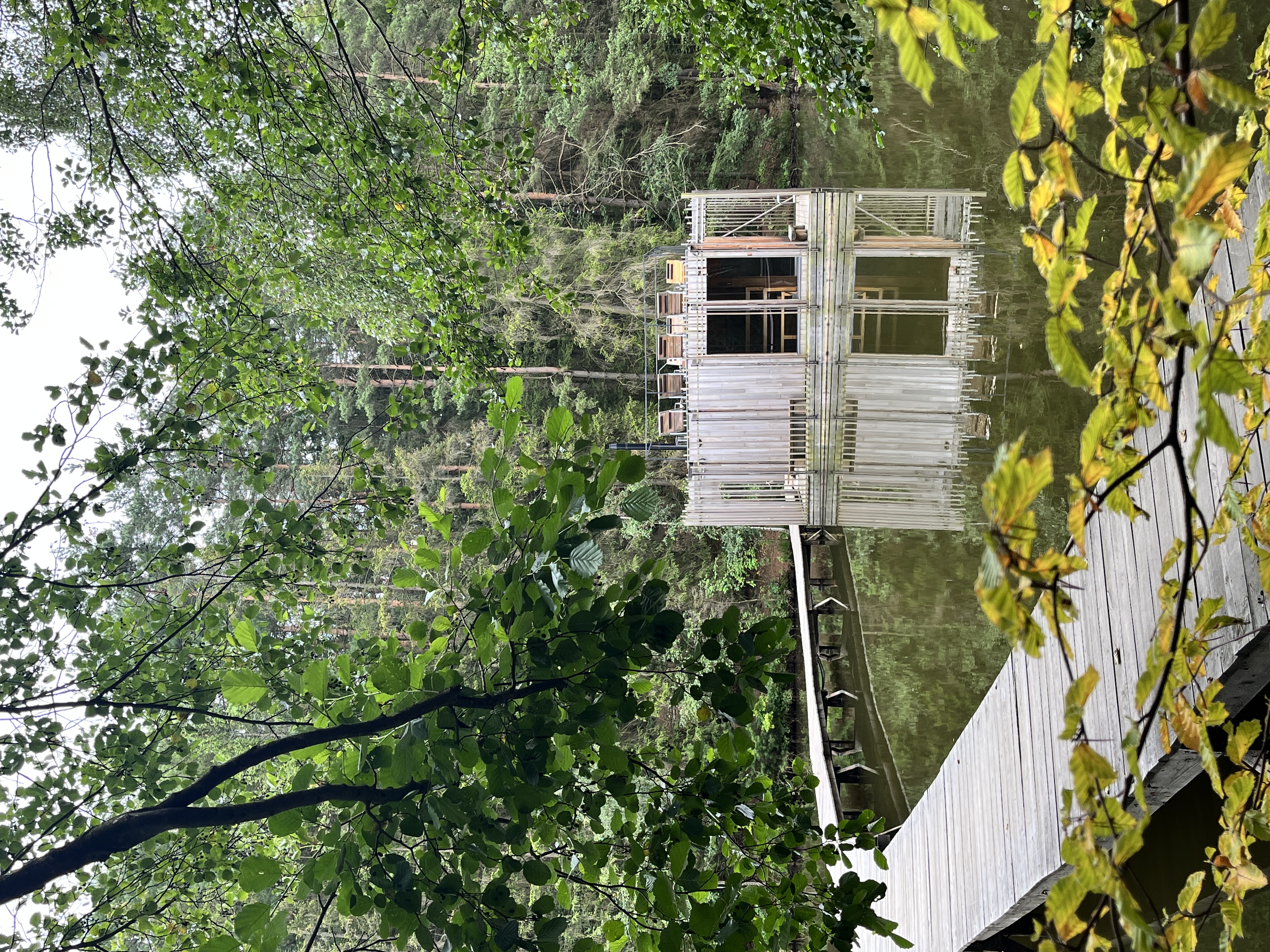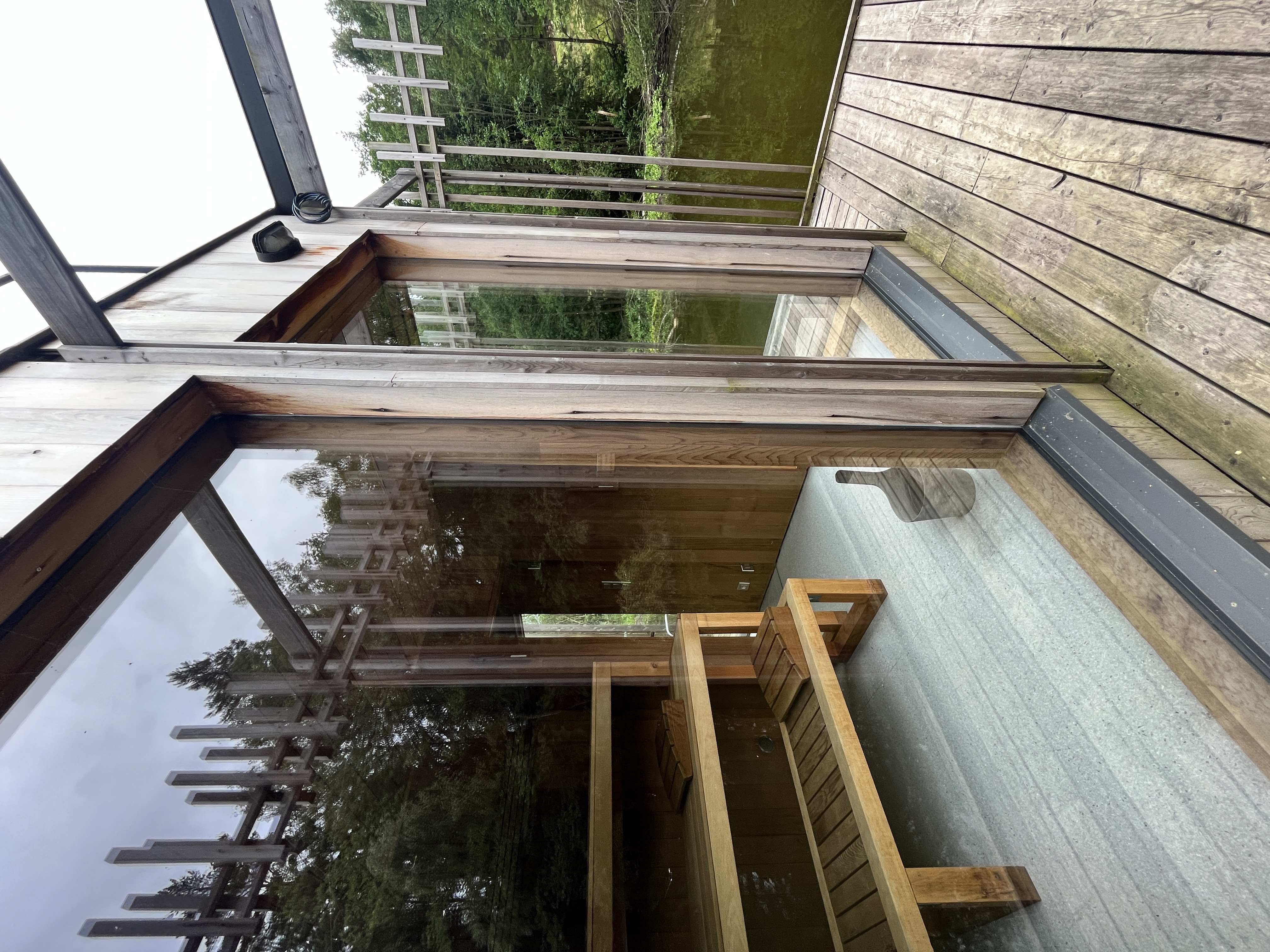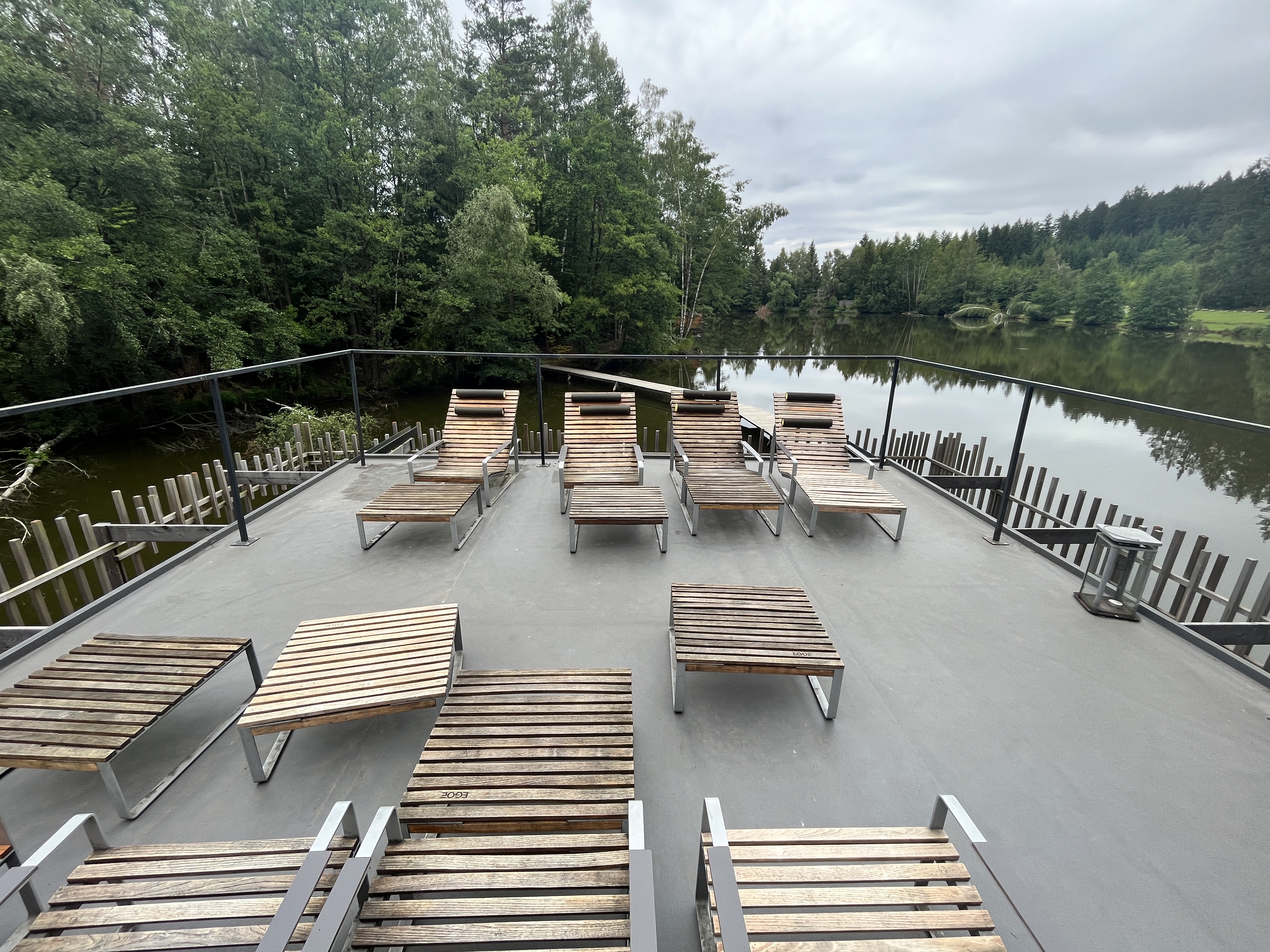 Sauna je navržena na základě požadavků klienta, tak aby návštěvníkům nabídla nevšední zážitek v podobě klidného saunování na rybníce nedaleko nabízeného ubytování. Pro konstrukci sauny bylo využito cedrové dřevo, které je lehké a má skvělé tepelněizolační vlastnosti navíc uvolňuje přírodní jemné vůně léčivých esenciálních olejů, které se pro saunovací rituál perfektně hodí. Okolo samotné prohřívárny je navržen ochoz tvořen nepravidelným laťováním, který návštěvníkům navodí relaxační atmosféru a díky kterému sauna splyne s okolím. Spojení sauny se břehem dlouhým plovoucím molem dodává objektu jeho jedinečnost.