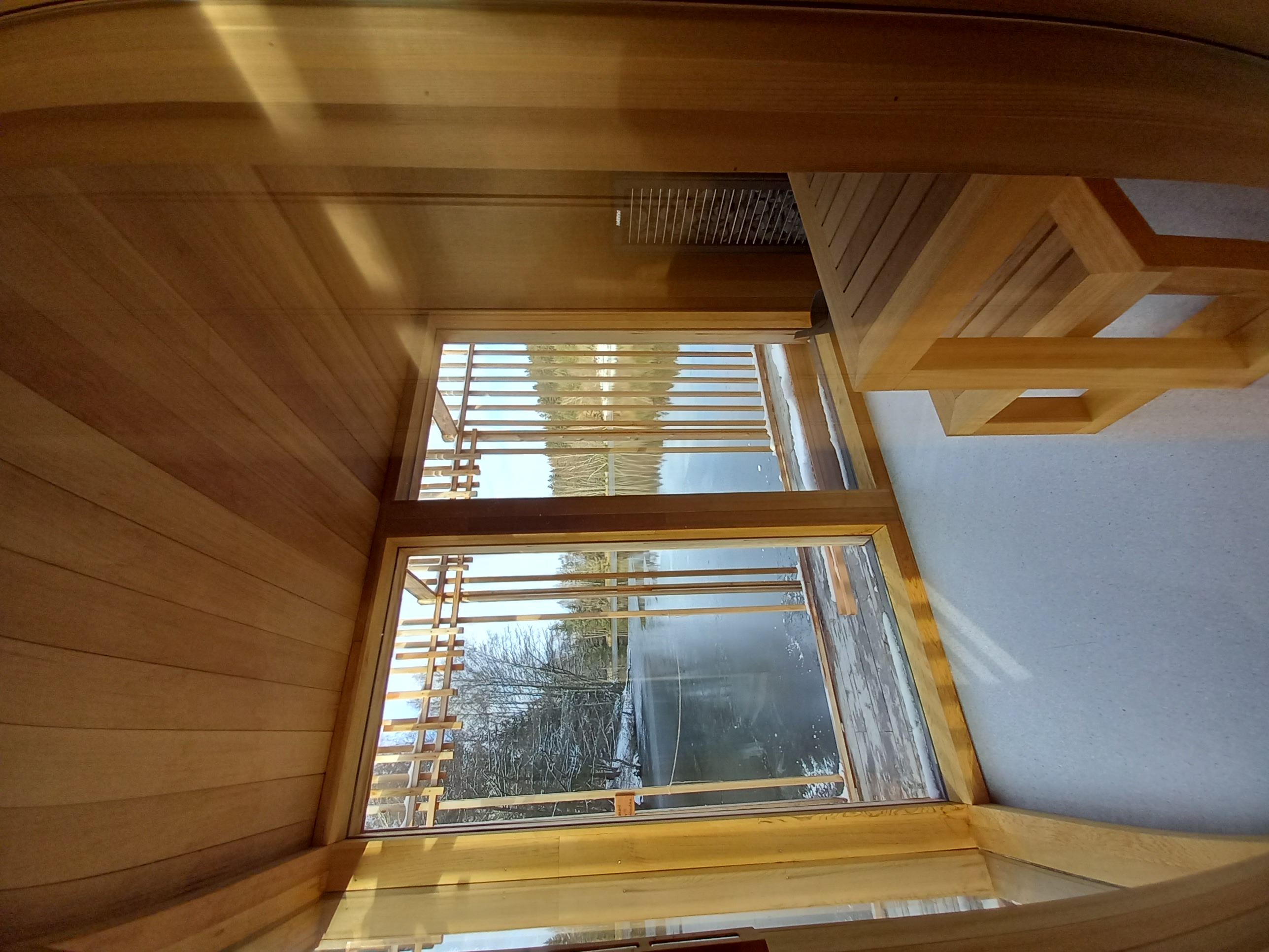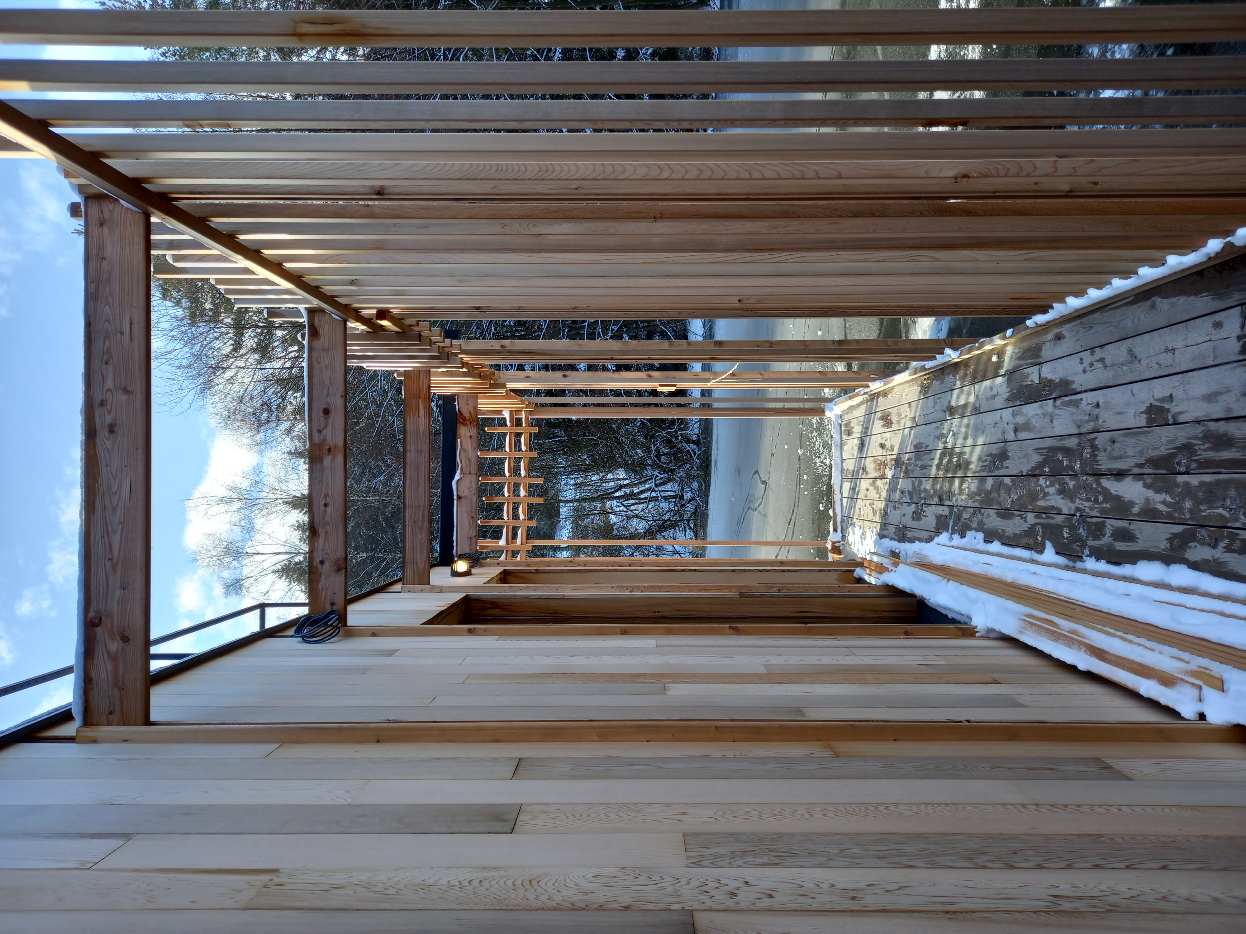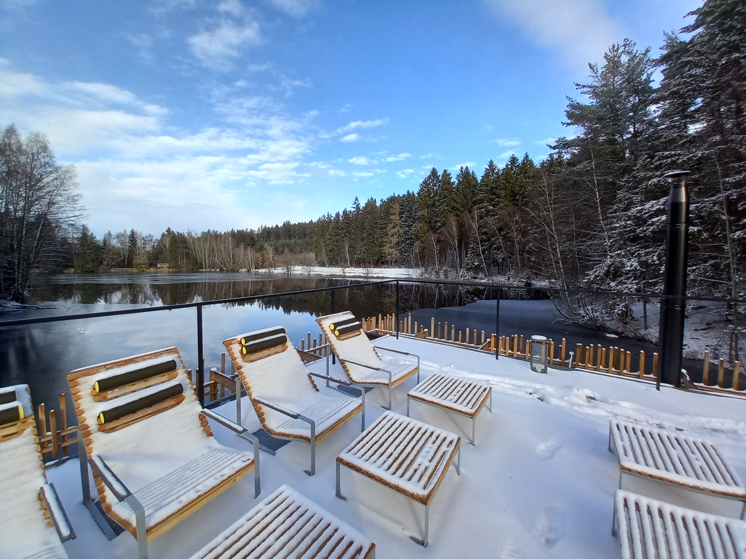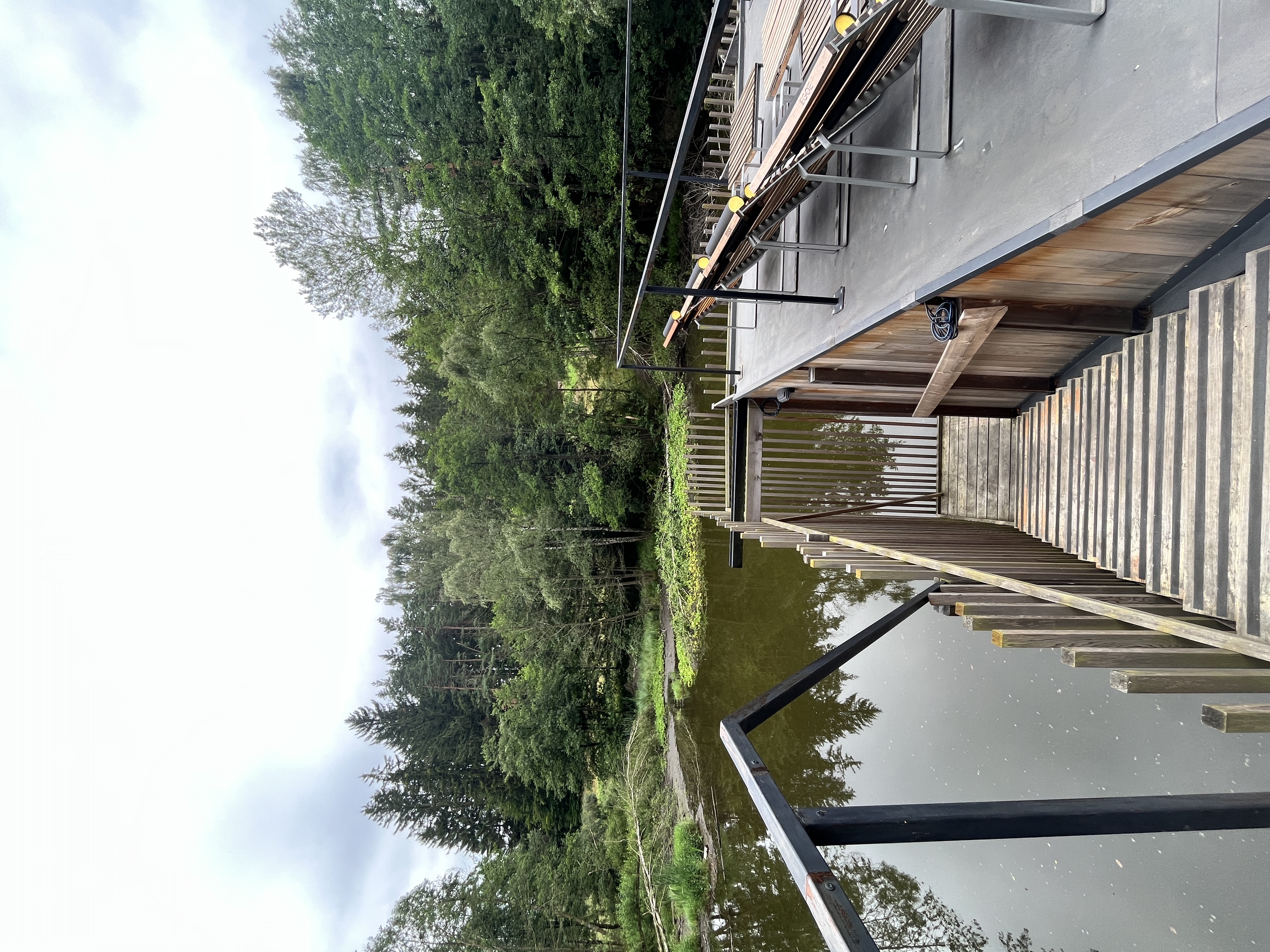 Sauna je navržena na základě požadavků klienta, tak aby návštěvníkům nabídla nevšední zážitek v podobě klidného saunování na rybníce nedaleko nabízeného ubytování. Pro konstrukci sauny bylo využito cedrové dřevo, které je lehké a má skvělé tepelněizolační vlastnosti navíc uvolňuje přírodní jemné vůně léčivých esenciálních olejů, které se pro saunovací rituál perfektně hodí. Okolo samotné prohřívárny je navržen ochoz tvořen nepravidelným laťováním, který návštěvníkům navodí relaxační atmosféru a díky kterému sauna splyne s okolím. Spojení sauny se břehem dlouhým plovoucím molem dodává objektu jeho jedinečnost.