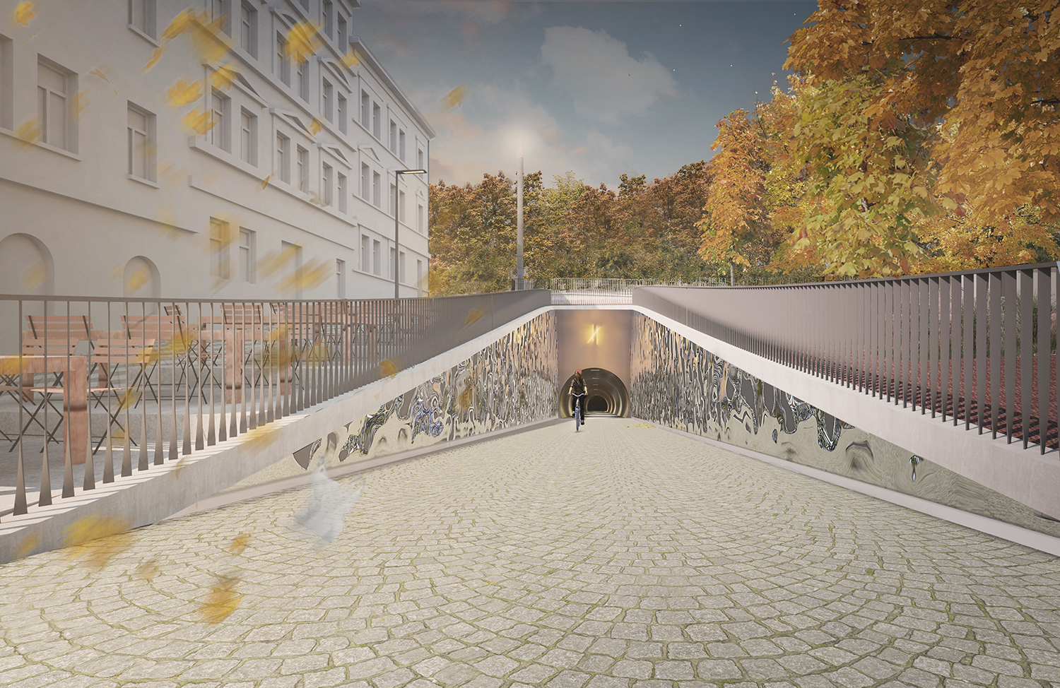 Genius loci tohoto místa je skvělý pro svou syntézu jednotlivostí, a to je tématem našeho návrhu vyústění Žižkovského tunelu na Tachovské náměstí. Vstoupení do obrazu zkreslené reality, do čtvrti rozmanitých perspektiv, která nikdy neztratila svoje světlo.