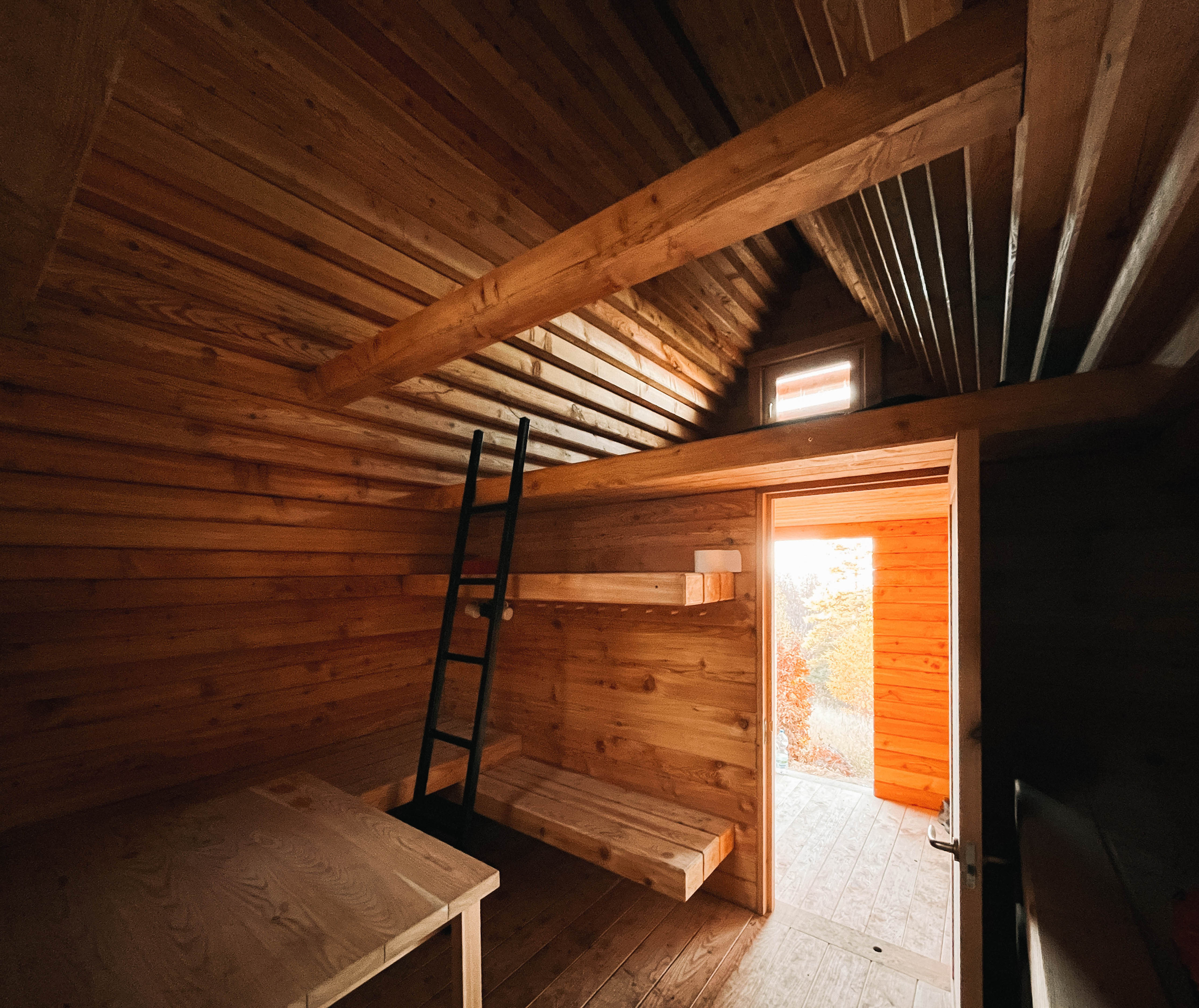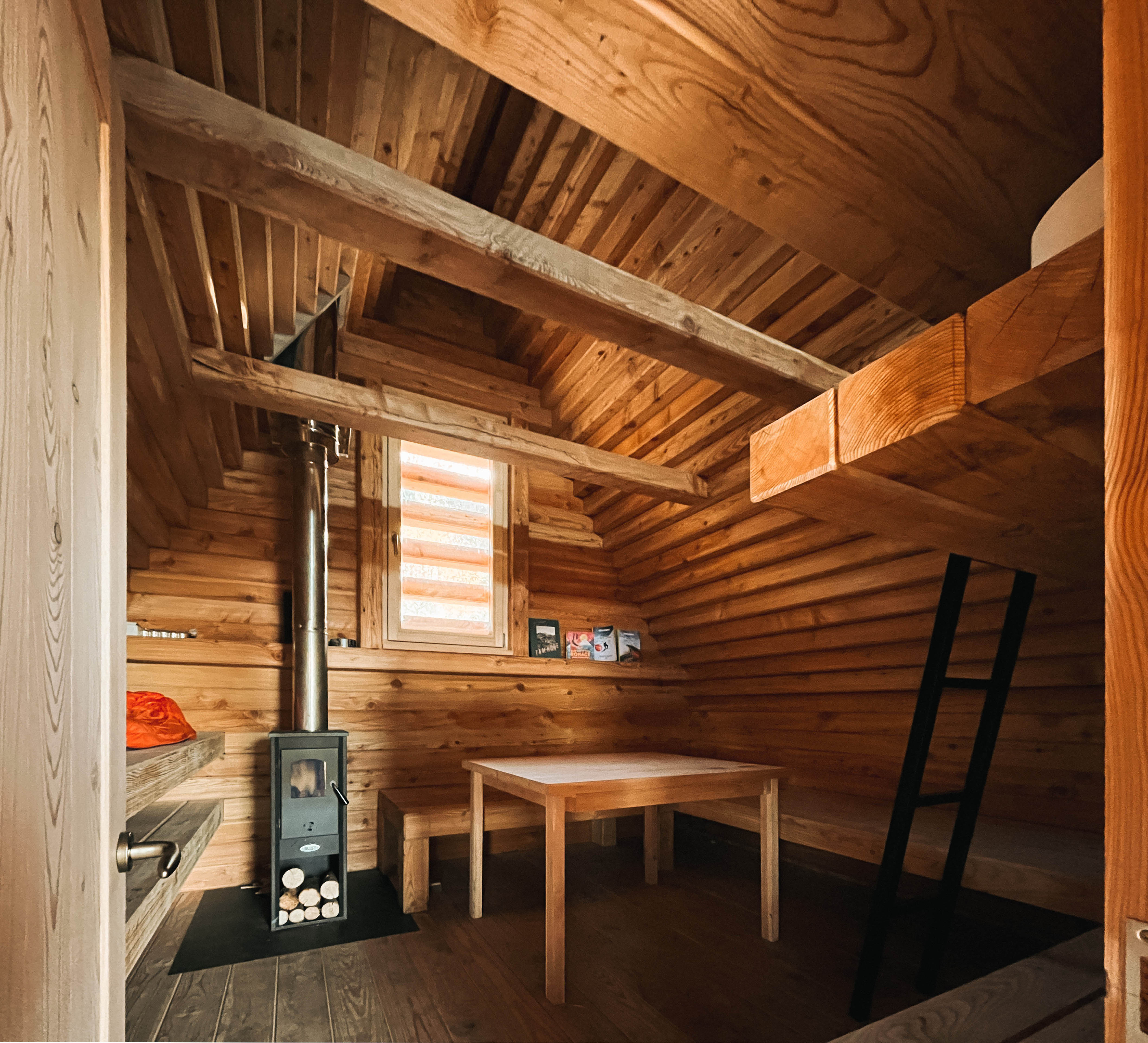 drevená konštrukcia vo svojej nahote pripomína utilitárnosť objektu.